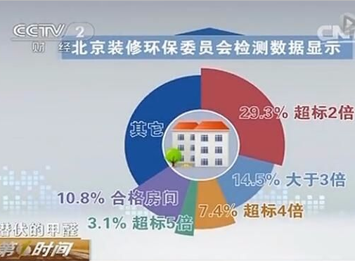 近日,央視財(cái)經(jīng)《第一時(shí)間》報(bào)道:北京裝修環(huán)保委員會(huì)檢測(cè)數(shù)據(jù)顯示,在接受調(diào)查的352間新裝修的房屋中,臥室甲醛含量超標(biāo)的有314間。其中,超標(biāo)2倍的臥室占調(diào)查總數(shù)的29.3%;超標(biāo)3倍以上的臥室占調(diào)查總數(shù)的25%;符合國(guó)家標(biāo)準(zhǔn)的房間,僅有38間。